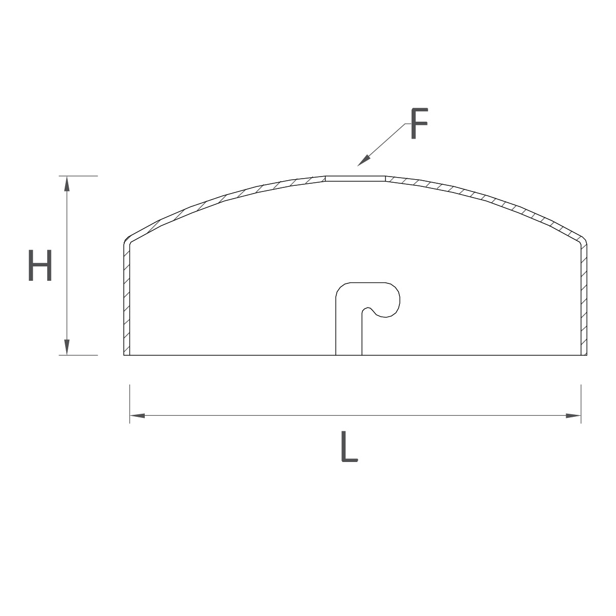 | Code | Misure L (ext. ø) x H | Foro ø (F) | Foro ø | Materiale |