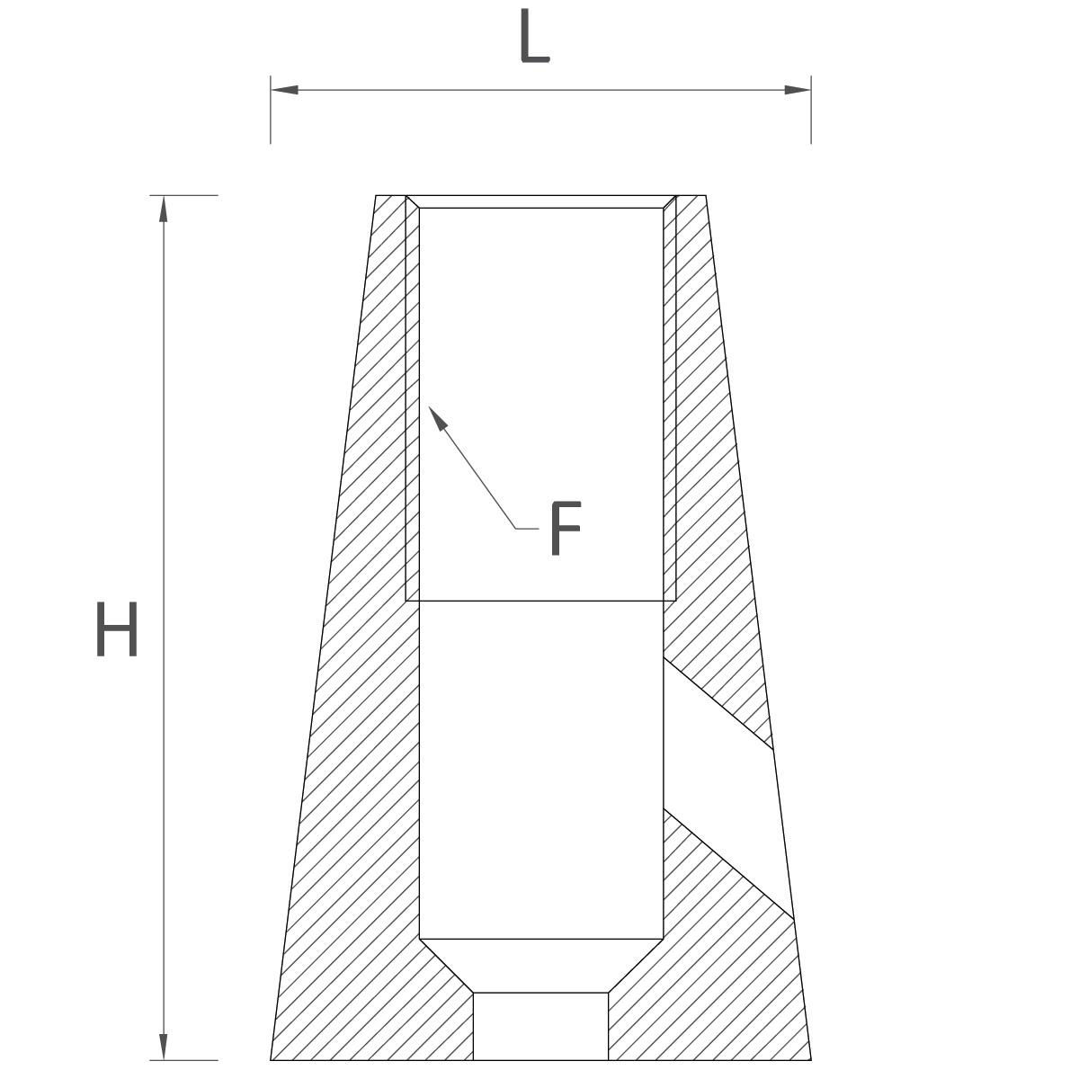 | Code | Misure L (ext. ø) x H | Filetto (F) | Materiale |