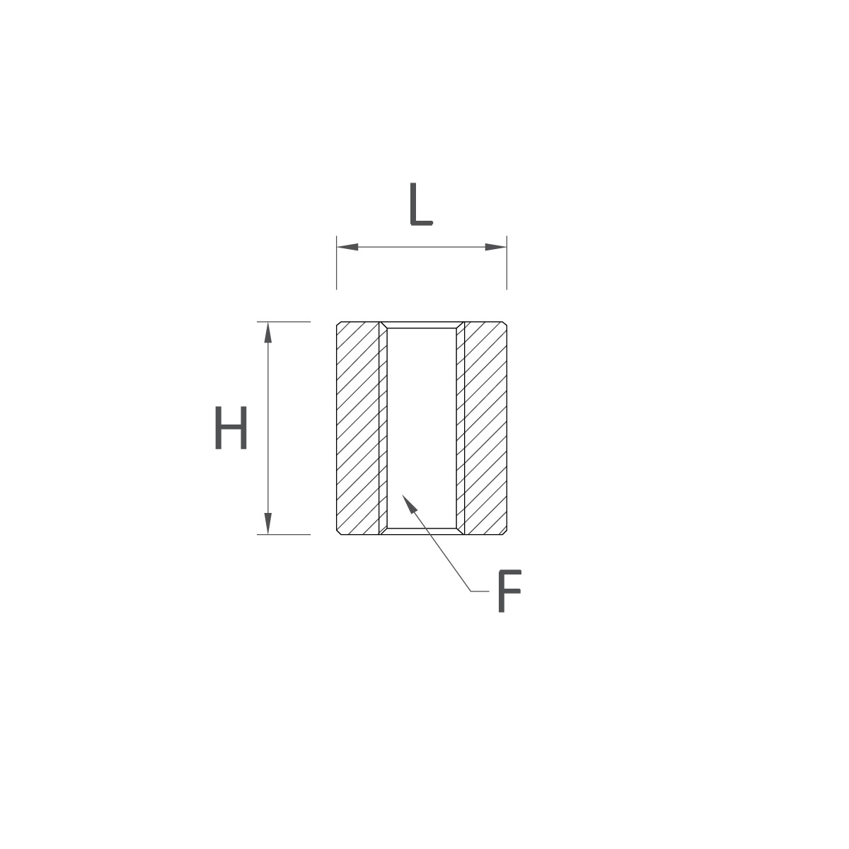 | Code | L(ext.ø)xH | Filetto (F) | Materiale |