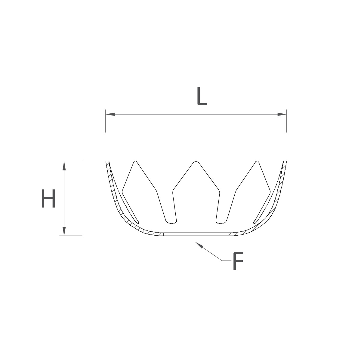 | Code | Misure L (ext. ø) x H | Foro ø (F) | Materiale |