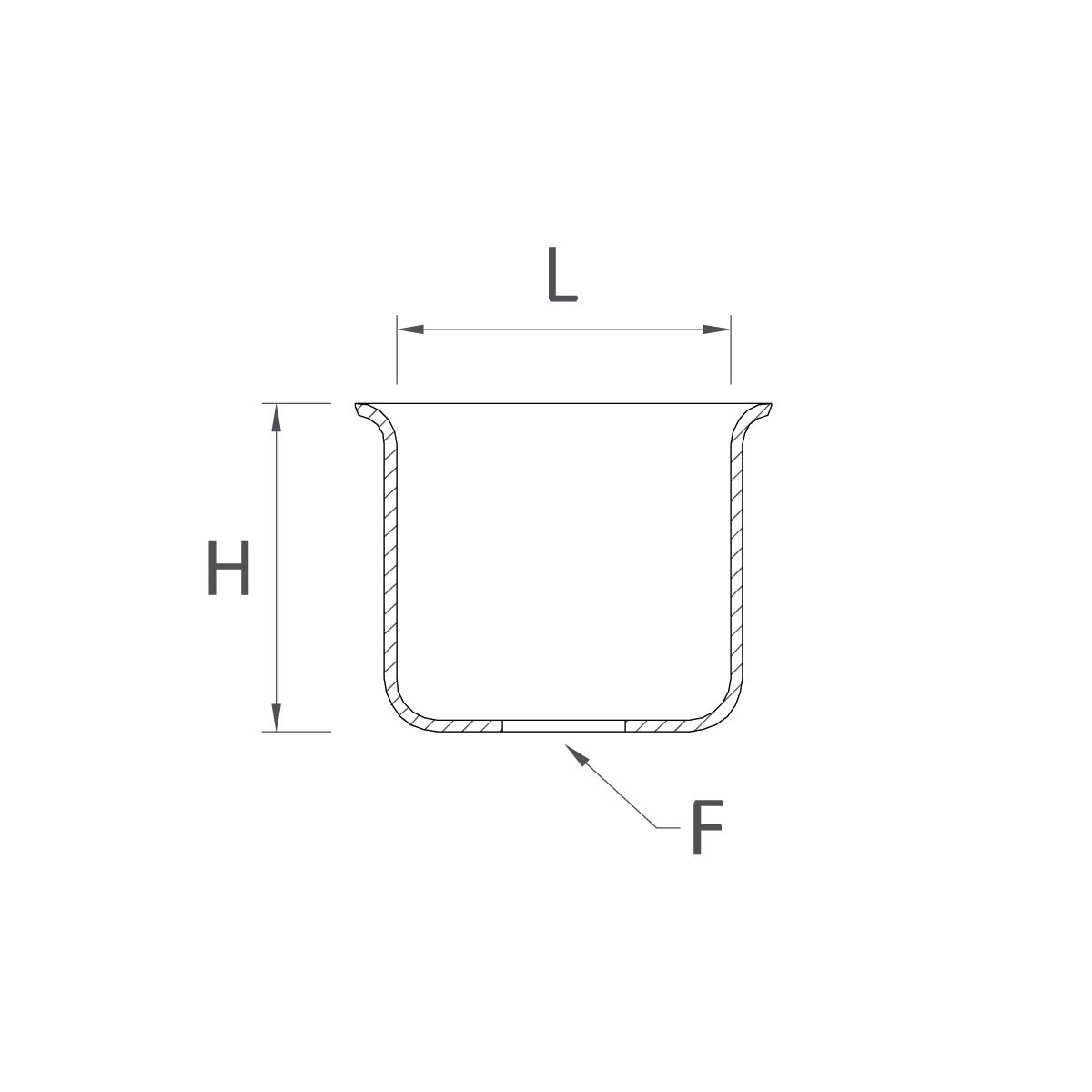 | Codice | Misure L (int. ø) x H | Foro ø (F) | Materiale |