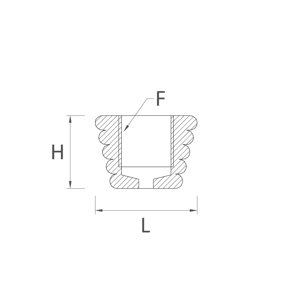| Codice | Misure L (ext. ø) x H | Filetto (F) | Materiale |