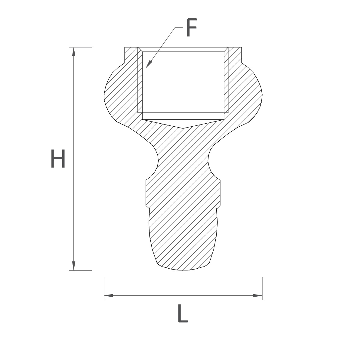 | Codice | Misure L (ext. ø) x H | Filetto (F) | Materiale |