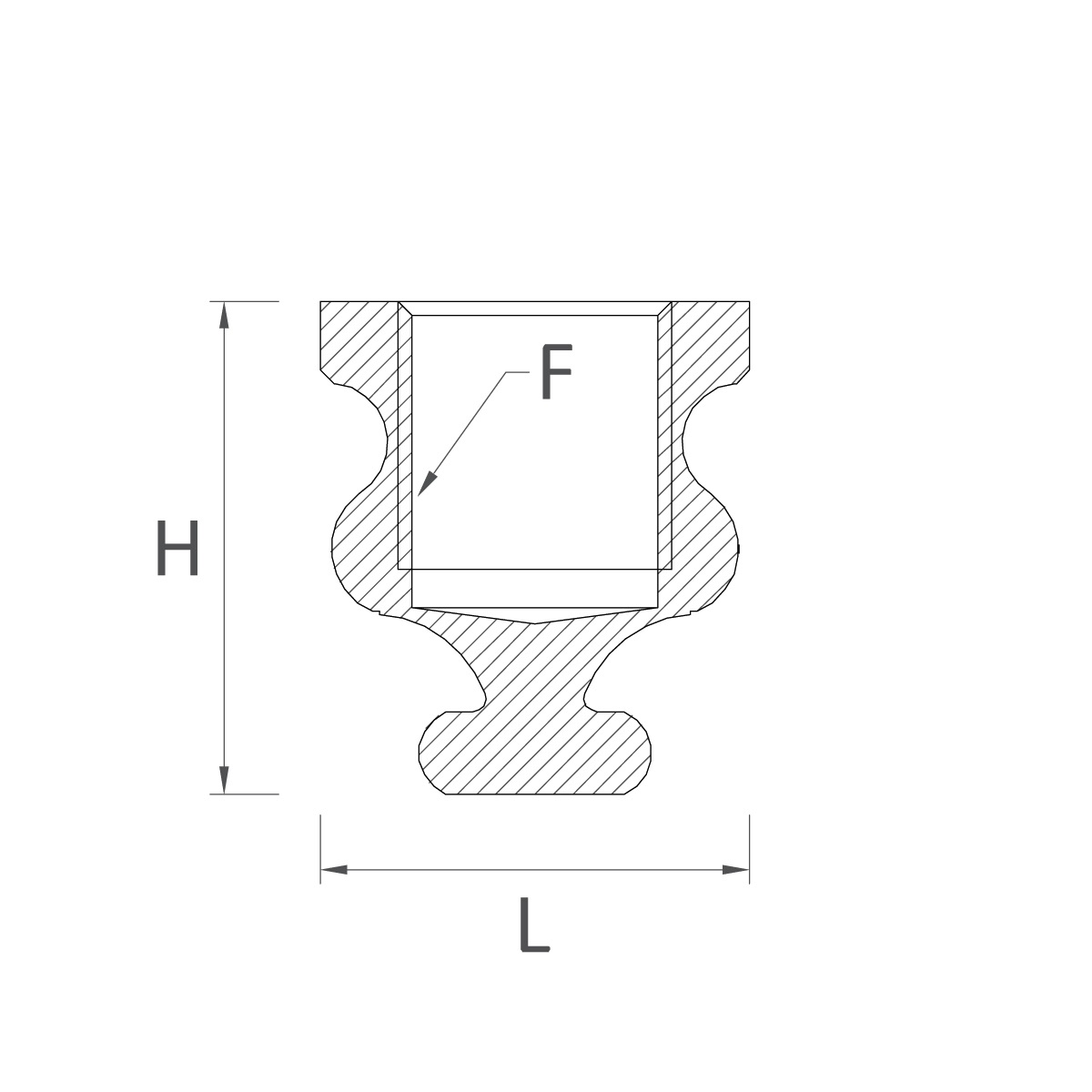 | Codice | Misure L (ext. ø) x H | Filetto (F) | Materiale |