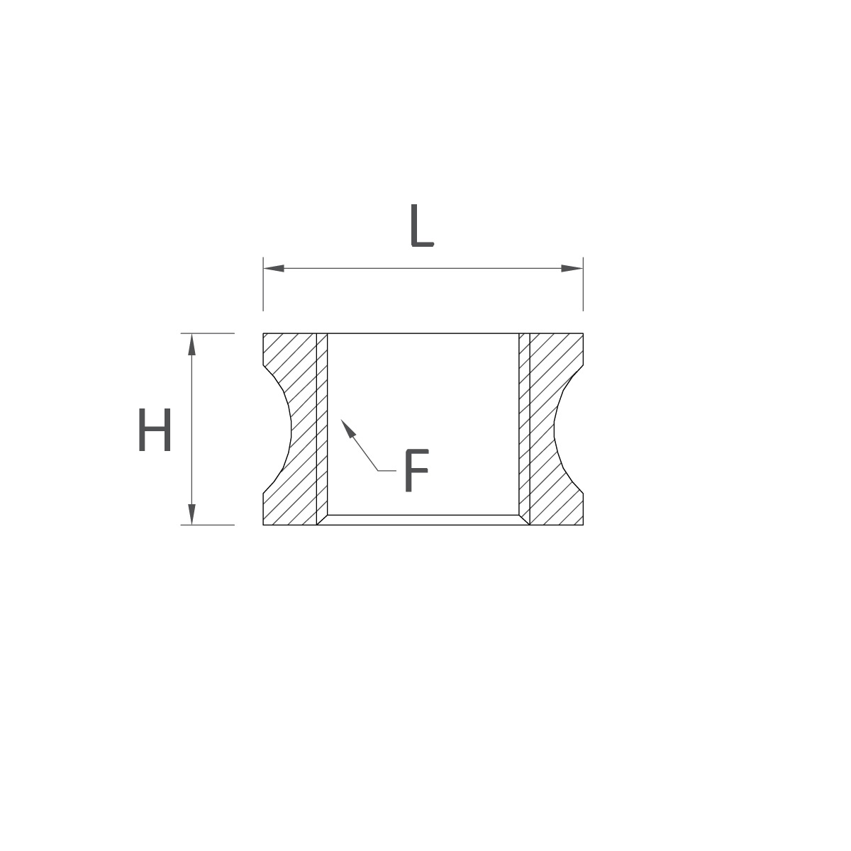 | Codice | Misure L (ext. ø) x H | Filetto (F) | Materiale |