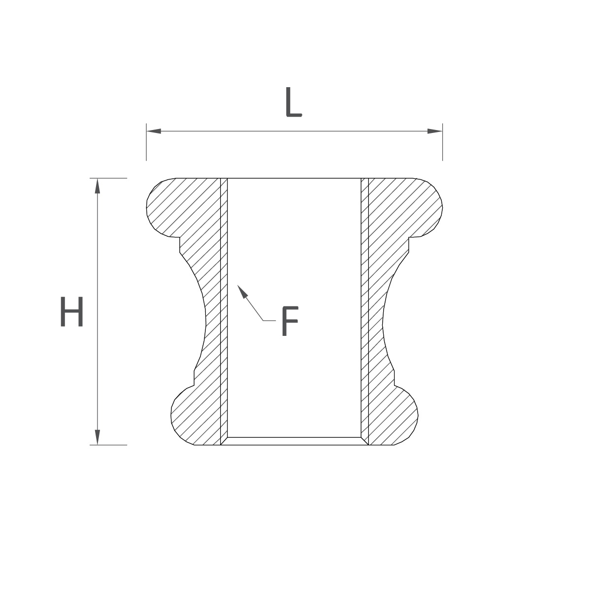 | Codice | Misure L (ext. ø) x H | Filetto (F) | Materiale |