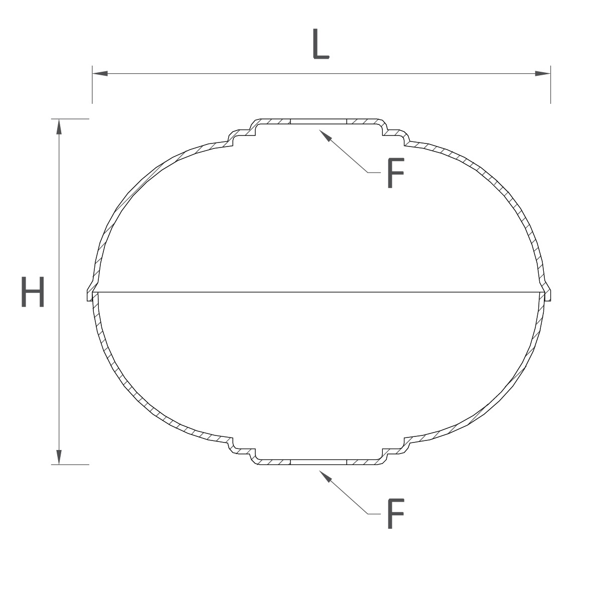 | Codice | Misure L (int. ø) x H | Foro ø (F) | Materiale |