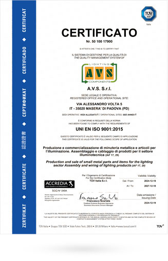 Dal 1977, AVS progetta e produce minuteria metallica di alta qualità per il settore dell’illuminazione e dell’arredamento. Con un impegno costante verso l’innovazione e la precisione, AVS utilizza tecnologie avanzate e materiali di prima scelta per realizzare componenti che soddisfano le esigenze dei clienti nazionali e internazionali.